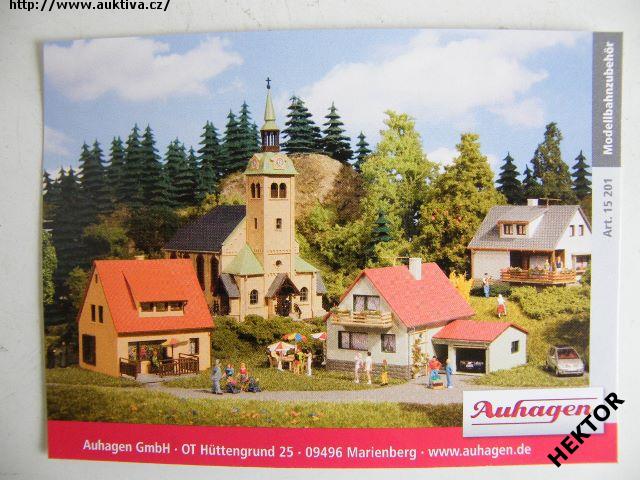 Samolepka stavebnice setu různých domečků Auhagen – vpravo je katalogové číslo, s popisem dole a vpravo – nové provedení. Nová nepoužívaná. Cena je za 1 kus.