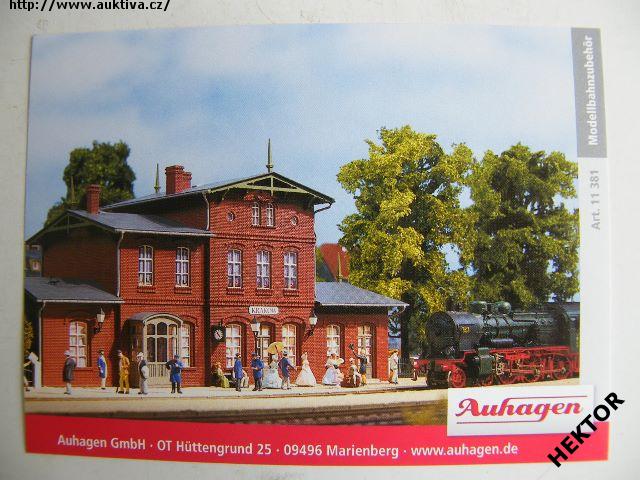 Barevná samolepka - stavebnice domečků Auhagen – nádraží – vpravo je katalogové číslo, s popisem dole a vpravo – nové provedení. Nová nepoužívaná. Cena je za 1 kus.