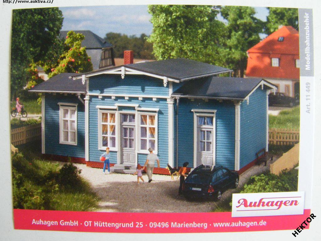 Barevná samolepka - stavebnice domečků Auhagen – rodinného domečku – na boku vpravo je katalogové číslo, s popisem dole a vpravo – nové provedení. Nová nepoužívaná. Cena je za 1 kus.