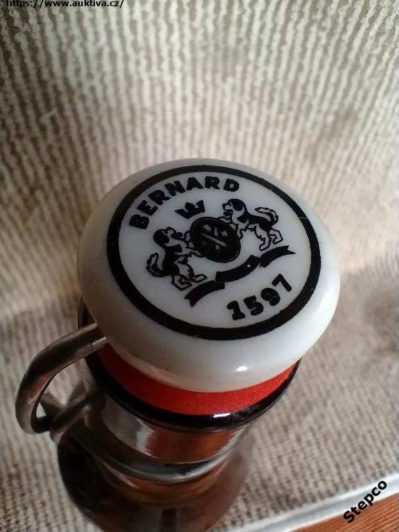 Sběratelská láhev od piva Bernard se zátkou. Lahvička má po obvodu vylisován plastický nápis Bernard. Pivovar byl založen v roku 1597. Letos bude mít 427 výročí