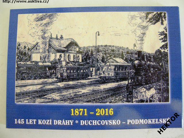 Set 13 barevných a černobílých obrázků a 4 obrázků na obalu – „145 LET KOZÍ DRÁHY – DUCHCOVSKO – PODMOKELSKÉ – 1871 – 2016 – lokomotiv parních, motorových, elektrických a motorových vozů ČSD z dob hluboké totality a současnosti v papírovém obalu. Nové nepoužité. Cena je za celý set, je nižší než součet jednotlivých pohlednic.