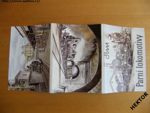 Set 19 kreslených barevných obrázků (vč. obalu - 16 + 3) velikosti 148 x 105 mm - starých parních lokomotiv ČSD z dob hluboké totality vč. obalu. Nové nepoužité. Cena je za 1 set.