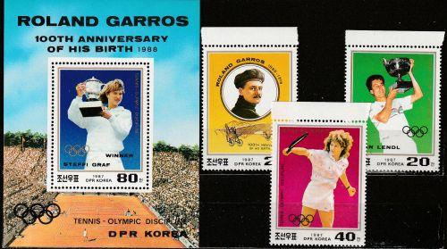 Severní Korea 1987 Tenis, Roland Garros, Lendl aj., Michel č.2889-91+Bl.228 **