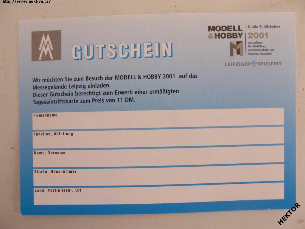 Slevový kupón na výstavu Modell Hobby v Lipsku v roce 2001. Nový nepoužívaný. Cena je za 1 kus.