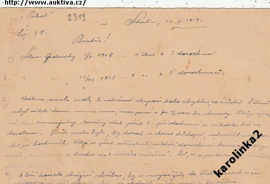 R-U DOPISNICE,CDV PROŠLÁ POŠTOU roku 13.2.1919 v ČSR=
