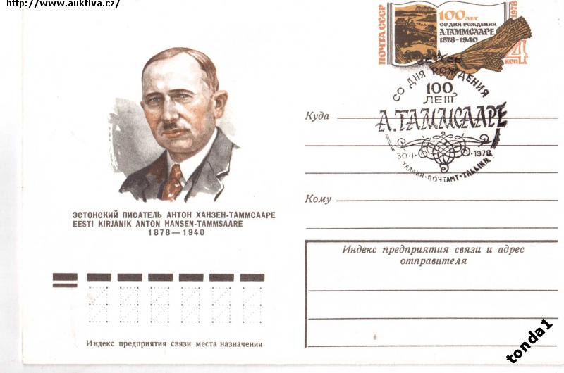 SOVĚTSKÝ SVAZ OBÁLKA R.1978 SPISOVATEL TAMMSAARE U 385 °245/O