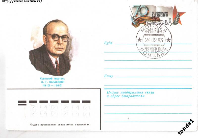 SOVĚTSKÝ SVAZ OBÁLKA R.1983 KAZAKEVIČ SPISOVATEL U 450 °338/O