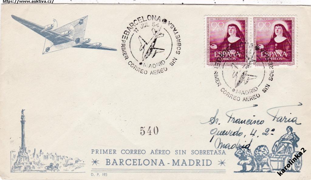 ŠPANĚLSKO=LETADLEM BARCELONA-MADRID=rok1954*c13714