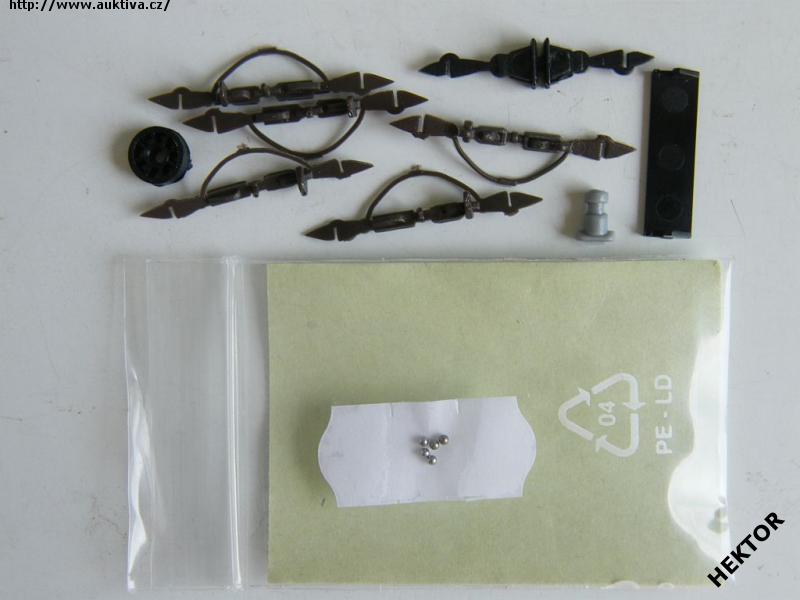 Pevná spřáhla délky 21,5 mm se šroubovkou a 1 hadicí kat. č. 09004 - TT, v balíčku je pouze 5 kusů spřáhel, která nahradí 10 klasických spřáhel + 4 - 8 malých kovových kuliček do ložisek lokomotiv + 1 jiné pevné spřáhlo + 1 dlouhý konický šnek + 3 různé díly TT. Spřáhla jsou především na spojení modelů výsypných vozů Wap a 4osých chladicích vozů. Výrobcem TT club Plzeň. Nový nepoužitý. Cena je za 1 balíček.