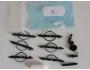 Pevná spřáhla délky 21,5 mm se šroubovkou a 2 hadicemi, kat. č. 09009 - TT, v balíčku je pouze 5 kusů spřáhel, která nahradí 10 klasických spřáhel + 4 - 8 malých kovových kuliček do ložisek lokomotiv + 1 jiné pevné spřáhlo + 1 dlouhý konický šnek + 2 různých dílů TT. Spřáhla jsou především na spojení modelů výsypných vozů Wap a 4osých chladicích vozů a rychlíkových vozů. Výrobcem TT club Plzeň. Nový nepoužitý. Cena je za 1 balíček.