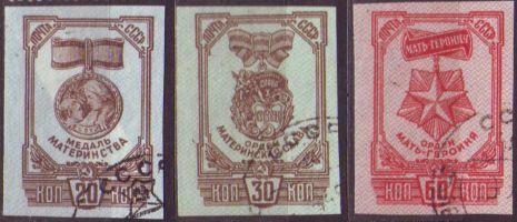 SSSR 1945 Řády a vyznamenání matkám, Michel č.968-70B raz.