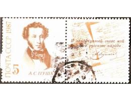 SSSR 1987 A. S. Puškin, Michel č.5723+kup. raz. rozmazané razítko sleva