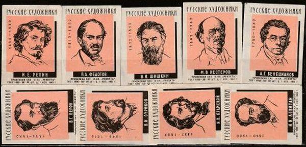 SSSR Ruští umělci, 9 zápalkových nálepek sirkárna RevpuS