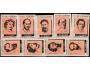 SSSR 1963 Ruští umělci, 9 ks zápalkových nálepek sirkárna Revpuť, černá, oranžová, papír bílý