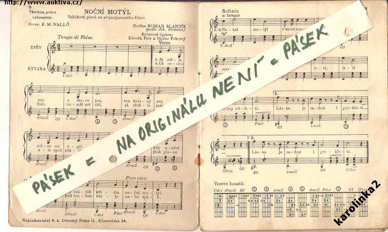 STARÁ PÍSEŇ =MOJE KYTARA= 7ks NOT A TEXTŮ*c1178