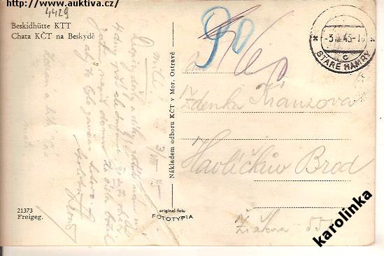 STARÉ HAMRY = CHATA NA BESKYDĚ/ DOPLATIT /rok1945?*AA4429