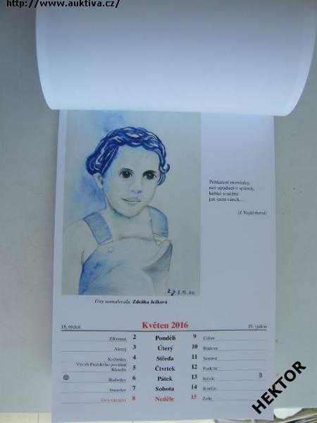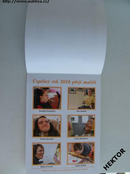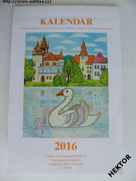 Stolní kalendář kreslený – 2016 – Originály obrazů namalovali ústy a nohama umělci s tělesným postižením. Nový nepoužitý. Cena je za 1 kus.
