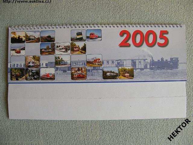 Stolní kalendář železniční 2005. Trochu používaný, několik poznámek psaných propisovačkou. Cena je za 1 kus.