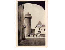 POHLEDNICE MALÝ FORMÁT , PROŠLÁ POŠTOU,VZADU SE ZNÁMKOU, ZACHOVALÁ,LEHKÝ LOM NA L.H.ROHU= VIZ OBRÁZEK=