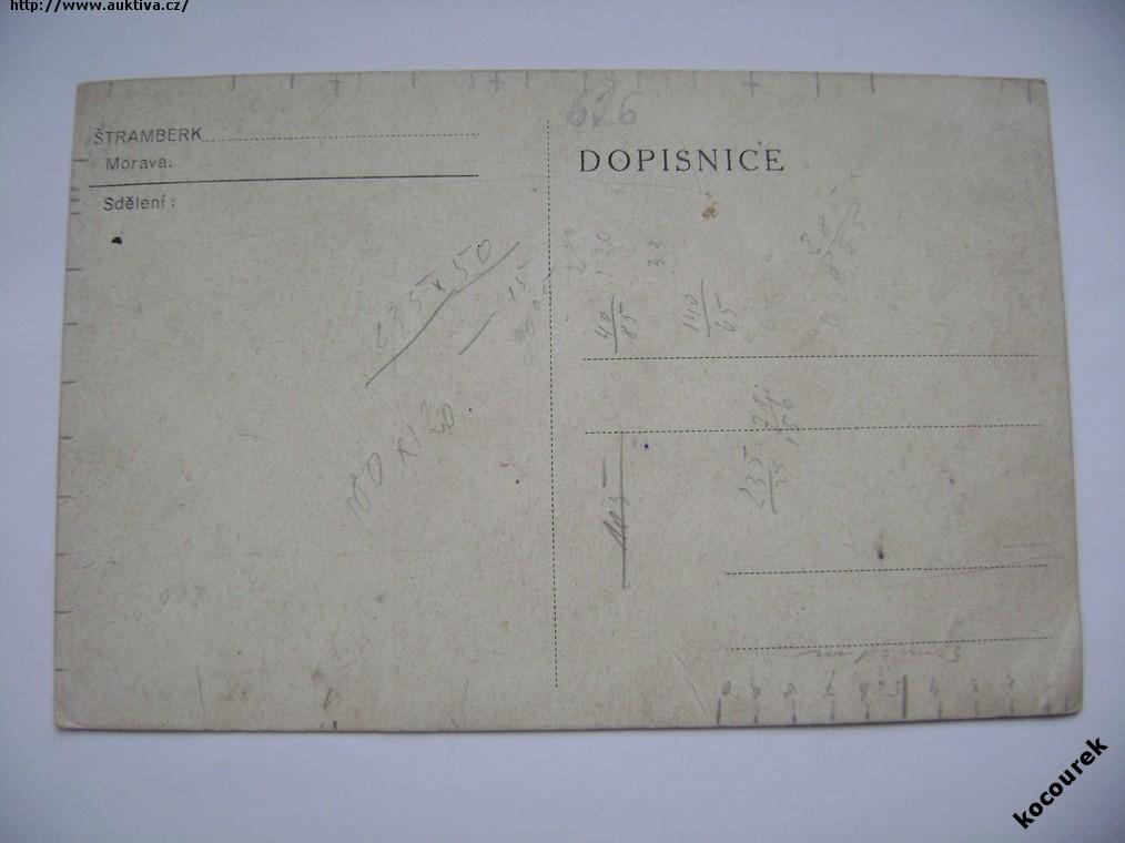 na pohlednici obdélníky tužkou, poškozený levý dolní rožekloadingloading