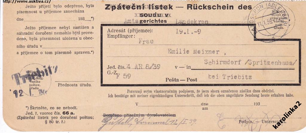 SUDETY=TRIEBITZ + LANDŠKROUN=rok1939*c8334