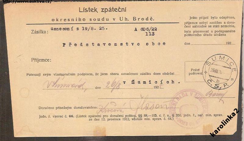 ŠUMICE +vzadu UHERSKÝ BROD=RECEPIS/rok1925*c1299