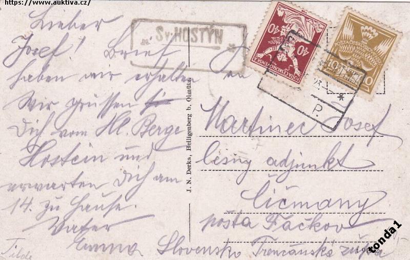 SVATÝ HOSTÝN cca r.1924 J.N.DERKA POŠTOVNA °53971I