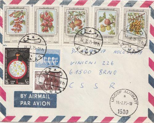 Sýrie 1974 Letecký dopis od rakouského příslušníka INDOF/AUSBAT po válce Jonkipur do ČSR frankovaný známkami Michel č.1228, 1290, 1274-8, 1279