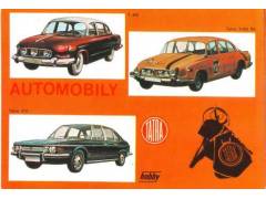 TATRA osobní automobily č.15 barevná okénková pohlednice cca 1975, podrobný popis typů na rubové straně