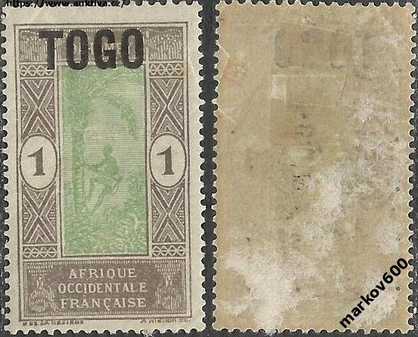 Togo - francúzsky mandát 1921 č.1, čistá, nepoužitá, stopa po nálepke, poškodený lep