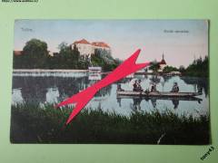 Tršice - Partie zámecká - loď pramice - lidé lehce natržen