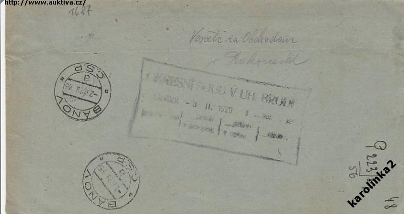 UHERSKÝ BROD + BÁNOV=DOPIS OD SOUDU /rok1929*c1687