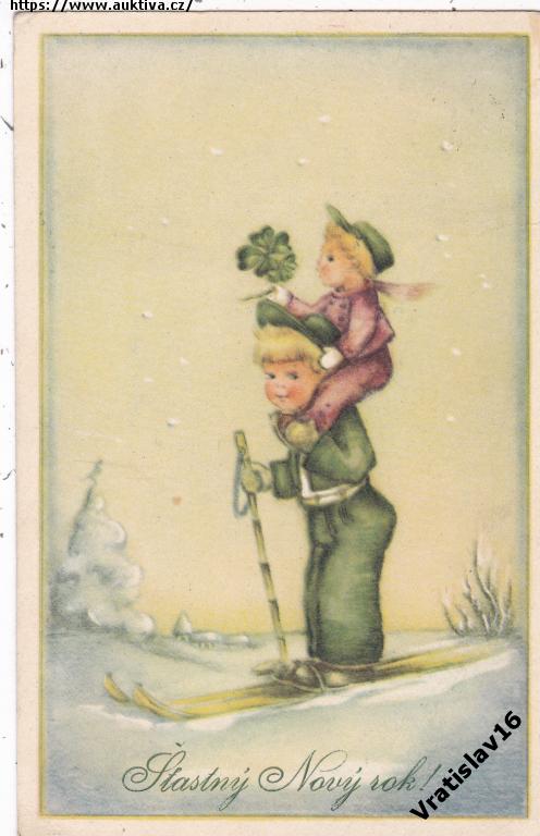 VÁNOCE =ČTYŘLÍSTEK+LYŽAŘ =rok1949*A12851