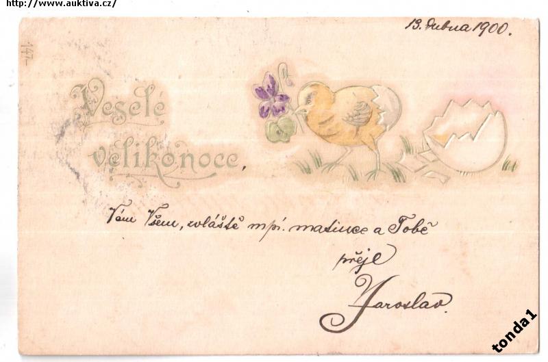 VELIKONOČNÍ KUŘÁTKO TLAČENÁ RELIEFNÍ cca. r. 1902 °53939R