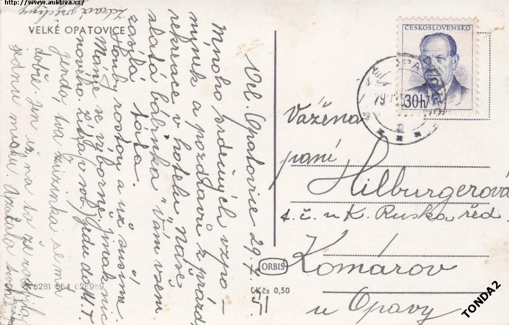 VELKÉ OPATOVICE ORBIS Kčs 0,50 °702G