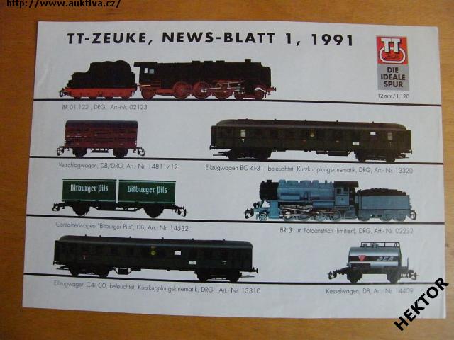 Velký barevný katalogový dodatek list č. 1 firmy Berliner TT Bahnen a Zeuke z roku 1991. Nový nepoužívaný. Cena je za 1 kus.