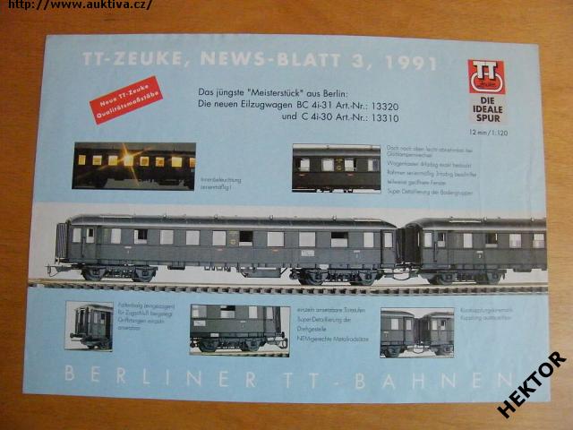 Velký barevný katalogový dodatek list č. 3 firmy Berliner TT Bahnen a Zeuke z roku 1991. Nový nepoužívaný. Cena je za 1 kus.