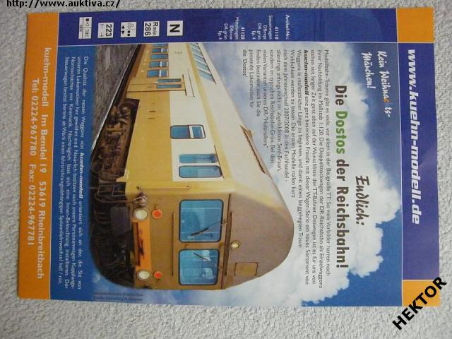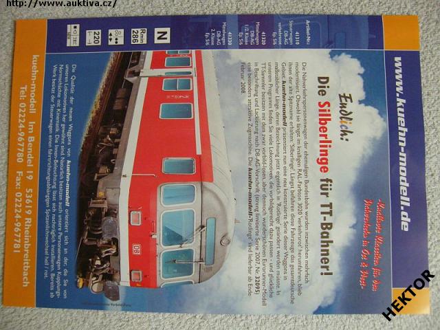 Velký barevný katalogový list 2007 – firmy „Kuehn – modell“ ve velikosti TT z roku 2007 na modely SILBERLEIN a patrových vozů. Nový nepoužívaný. Cena je za 1 kus.