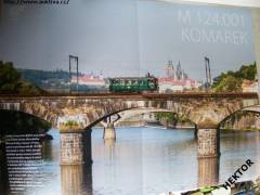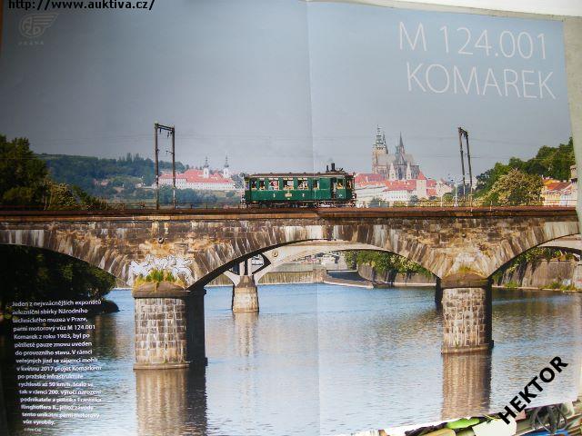 Velký jednostranný plakát parního motorového vozu řady 124.001 – KOMÁREK v Praze na mostě – barevný. Vydalo AŽD. Nový nepoužitý. Cena je za 1 kus.
