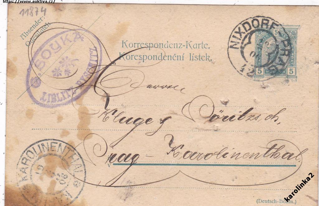 VLAK.POŠTA NIXDORF-PRAG 42+KAROLINENTHAL=rok1906*c11871