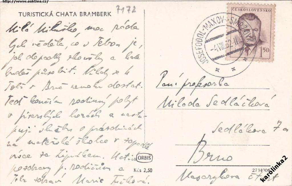 VLAK.POŠTA JOSEFODOL-MAXOV-SMRŽOVKA= BRAMBERK/rok1952*c7172