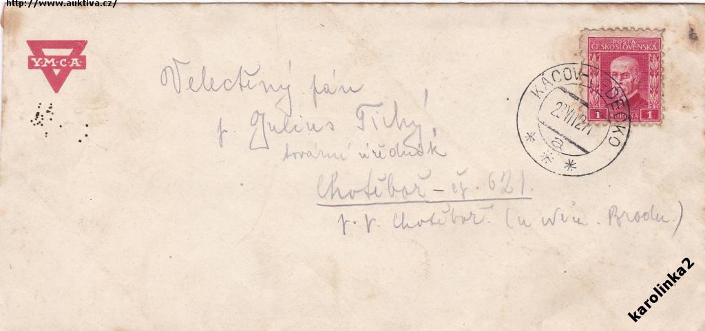 VLAK.POŠTA=KACOV-LEDEČKO +YMCA /rok1927*c7329