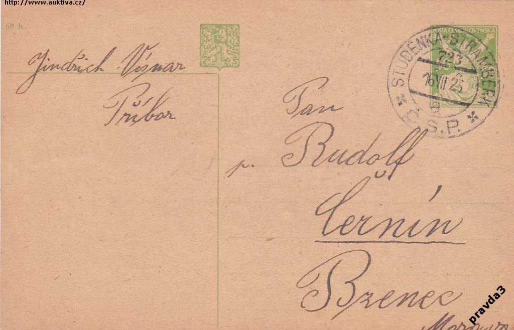 VLAKOVÁ POŠTA č.723 STUDÉNKA - ŠTRAMBERK CDV24 - VP69