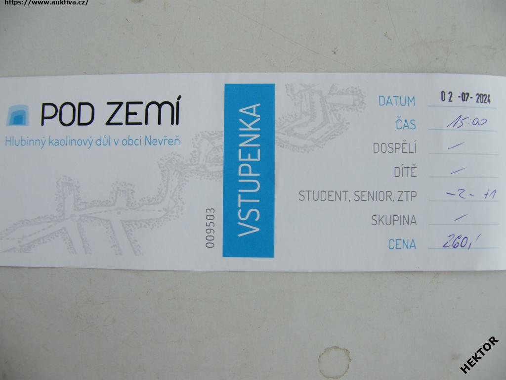 Vstupenka do kaolinového dolu v Nevřeni, číslo 009503. Dne 2.7.2024, byla použitá. Cena je za 1 kus.