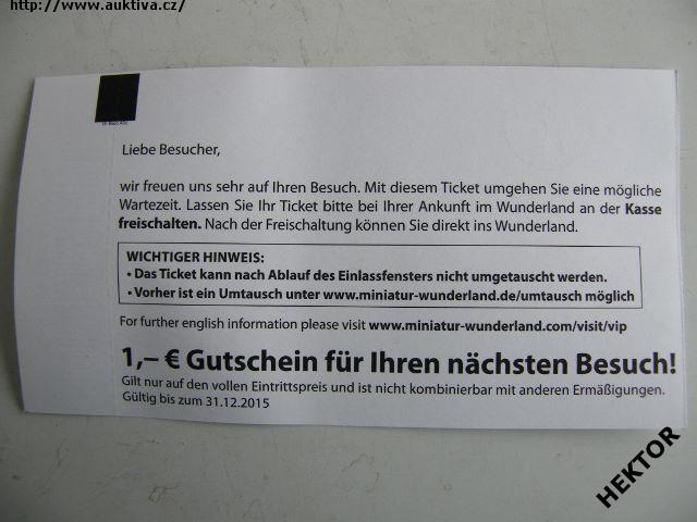 Vstupenka MINIATUR WUNDERLAND - HAMBURK - ze dne 7. 4. 2014. Prakticky nová. Cena je za 1 kus.