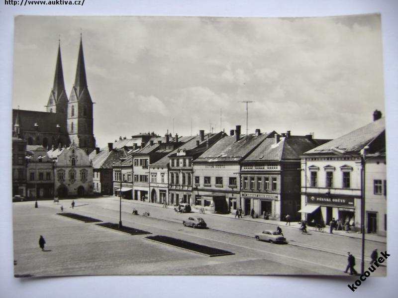 Vysoké Mýto náměstí stará auta obchody lidé 1965 Orbis