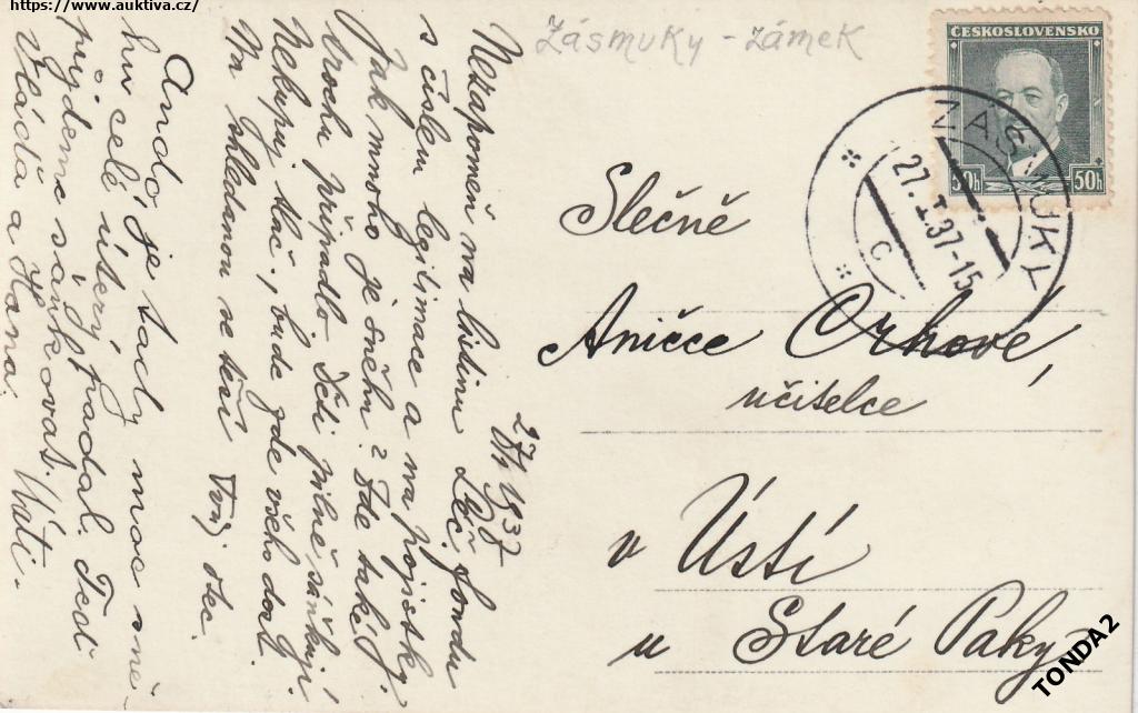 ZÁSMUKY ZÁMEK r. 1938 BEZ NAKL. °HB774