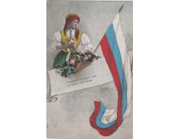 ŽENA V KROJI + PRAPOR =KOLÁŽ=rok1919?*kc8887