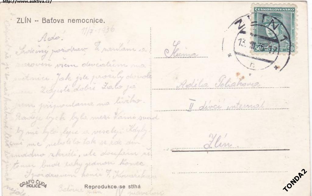 ZLÍN BAŤOVA NEMOCNICE cca r. 1935 GRAFO ČUDA °709M
