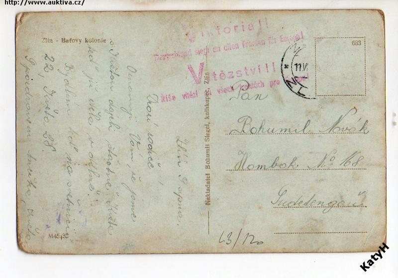 Zlín Baťovy domy raz.Viktoria Vítězství,prošlá L3/120